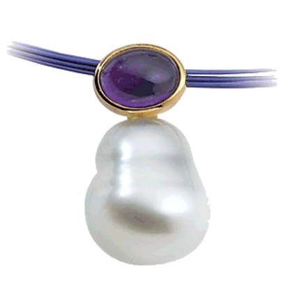 14K Yellow / 07.00X05.00 MM/11.00 MM FINE C / Polished / SOUTH SEA CULTURED PEARL & GENUINE AMETHYST PENDANT